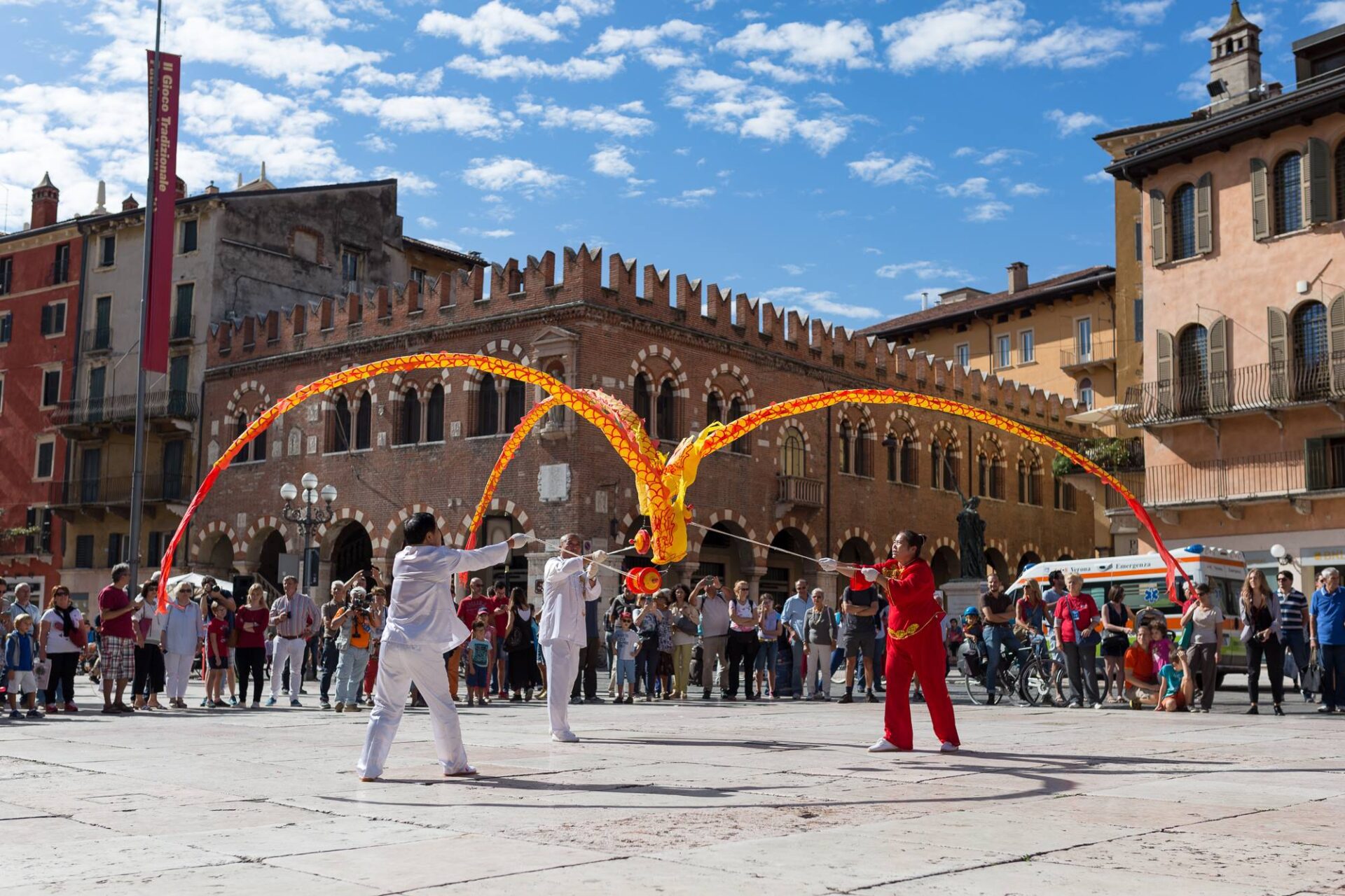 Durante il festival, Verona si trasforma: lo spazio urbano si apre, si fa accogliente, si riempie di corpi in movimento e di relazioni. È un momento in cui i cittadini si riappropriano delle strade, delle piazze, dei cortili, che tornano a essere luoghi di vita, gioco e comunità.